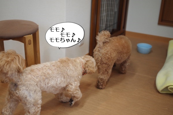 モモちゃんが来ると、看板犬コニーは変なおじさんになります。