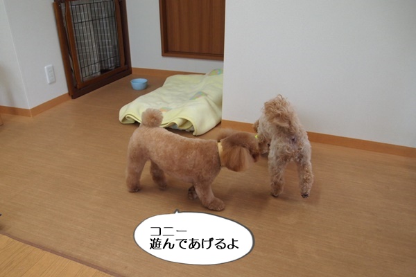 あれだけ「モモちゃんモモちゃん」と言っていたコニーですが、こういう時に限っておもちゃに夢中です。