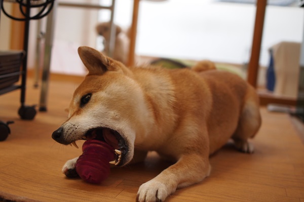 むぎちゃんの強い歯でもびくともしないおもちゃでした。