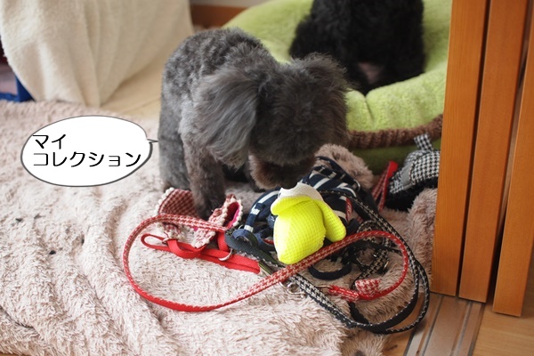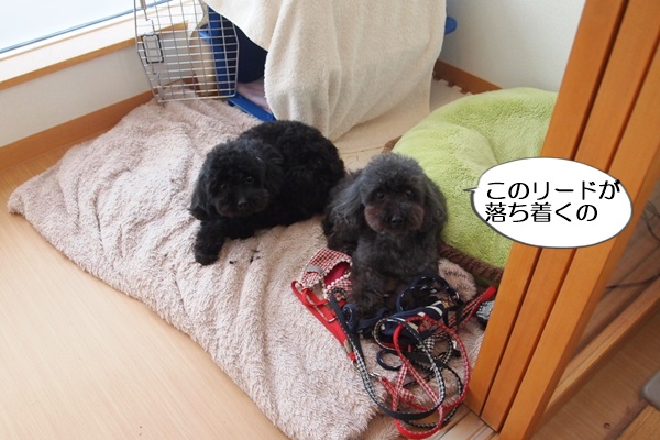 レアンちゃんは自分たちのリードが精神安定剤の役割を果たしているのか、この上にいると落ち着いてくれるんですよね。