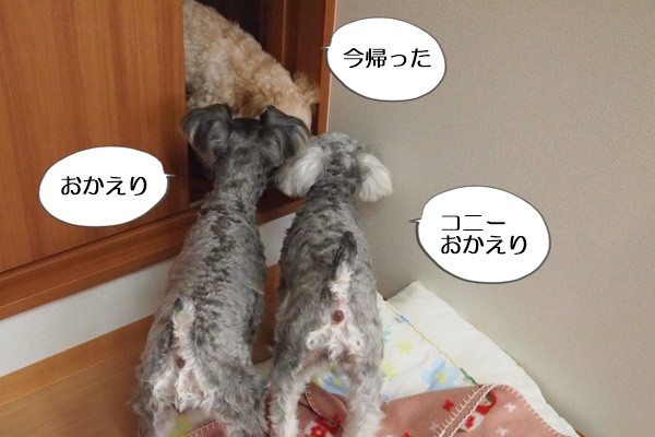 女の子2頭から熱烈な歓迎を受けての帰宅。