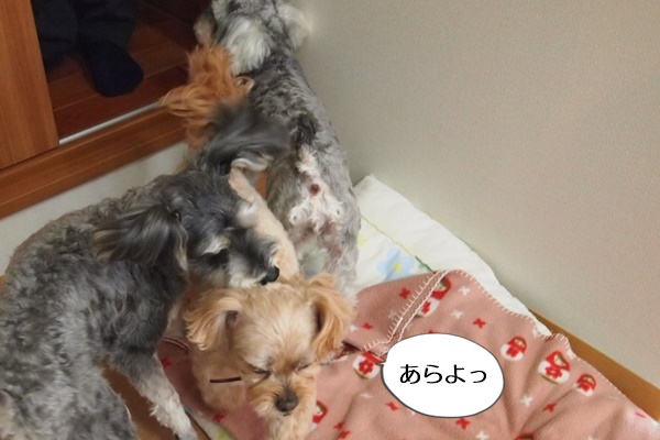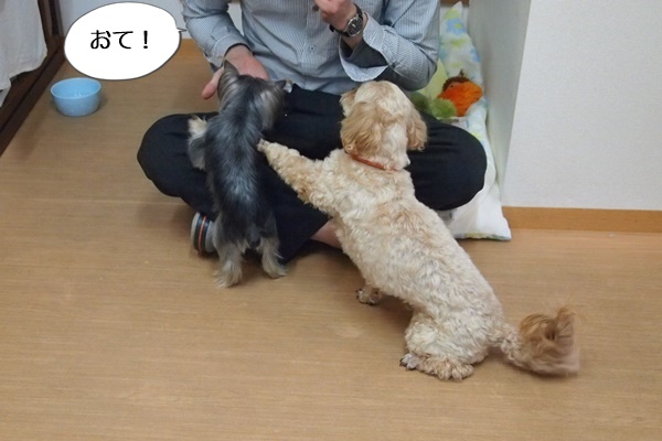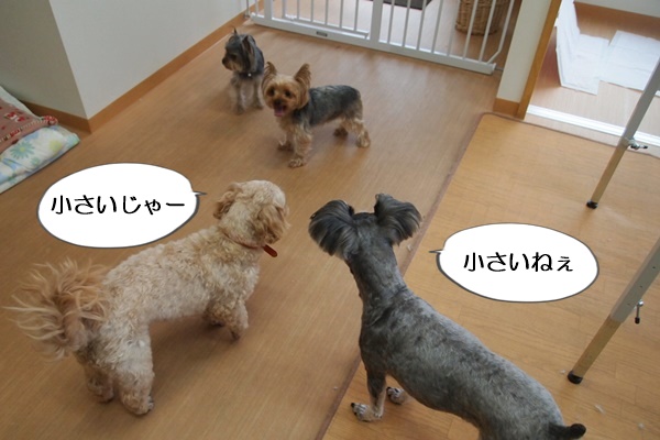 ルルちゃんの方が年上で先住犬なんだけどな。