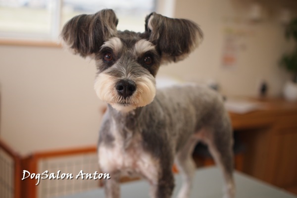 シュナウザーのスタンダードカットは、耳をツルツルにしてまつ毛を切るのですが、