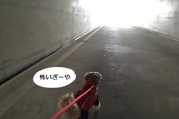 コニーのお散歩で、8号線の高架下を2か所通るのですが、コニーはここがちょっと怖いみたいです。