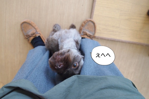 しばらくは1人で伏せていたのですが、私がぼーっとしていると抱っこをせがんできました。