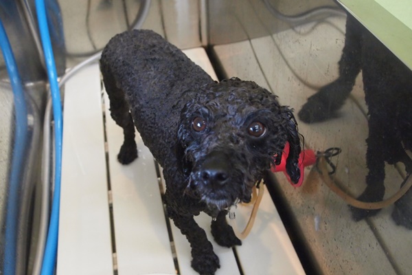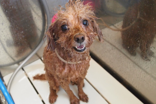 元気よく来店した蘭ちゃんですが、シャンプーが始まるとお利口さんに変身。