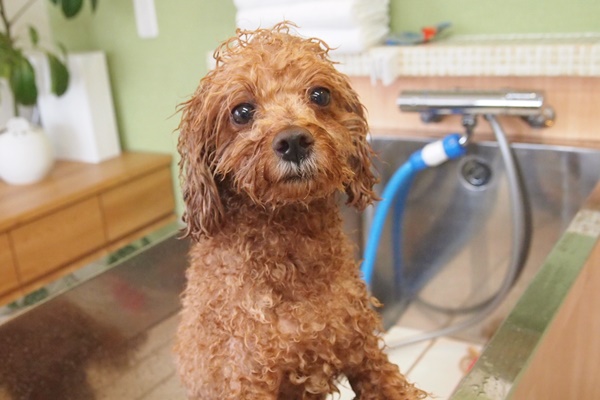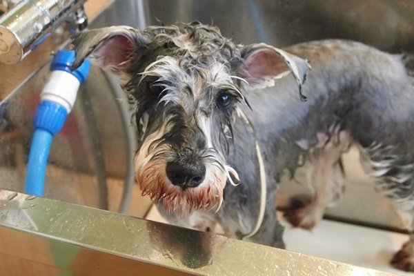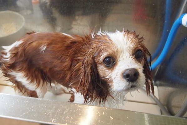 看板犬コニーと挨拶を済ませてからシャンプースタート。