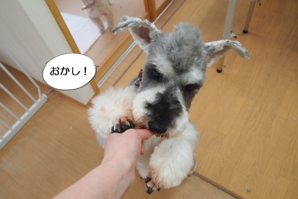 おやつをあげるのに、「まて!」と言う前に食べられました(笑)。