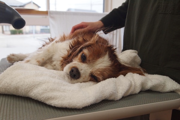 マロンちゃんはこの通り、リラックスモードでブロー。