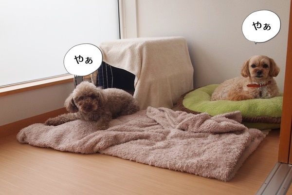 看板犬コニーがわんわん言うもんだから、あいちゃんもそわそわ。