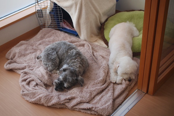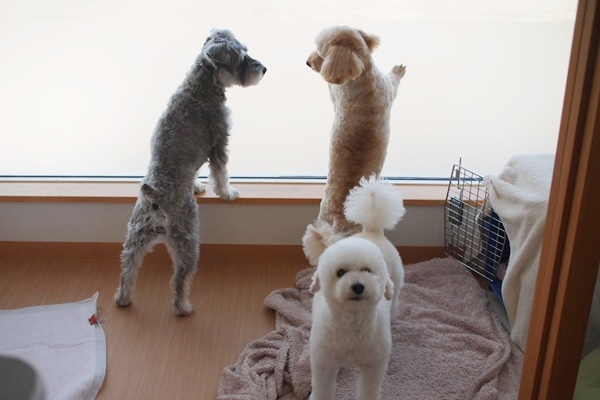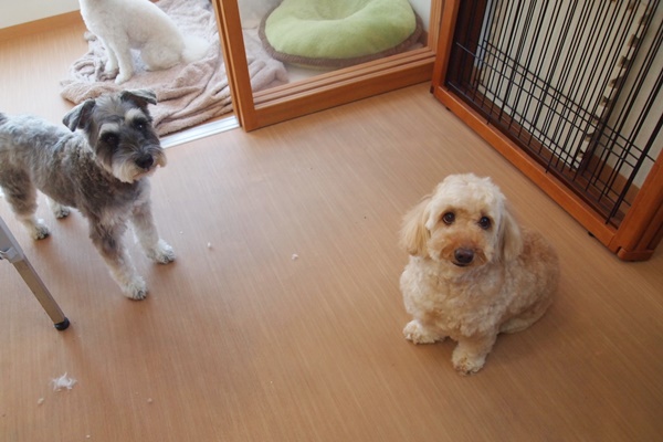 モコちゃんのカット中、福ちゃん&マハロちゃんは、