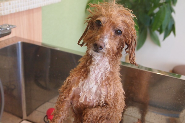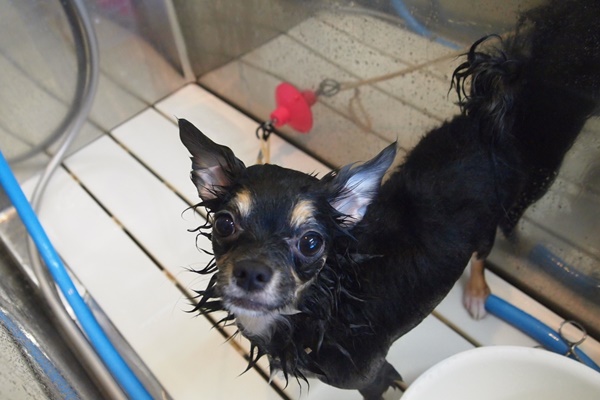嫌なことじゃありませんよー、と極端に褒めながらのシャンプーとなりました。