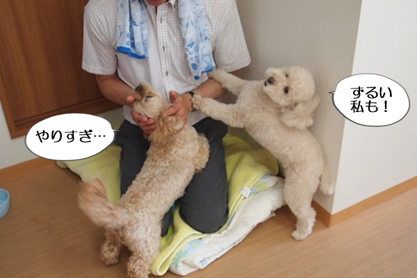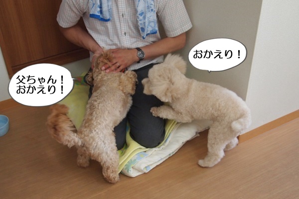 シャンプーブローを終えた頃に、ちょっと仕事に行っていた主人が帰ってきました。