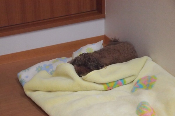 やっと伏せてくれたという感じで、寝るまでにはいきません。