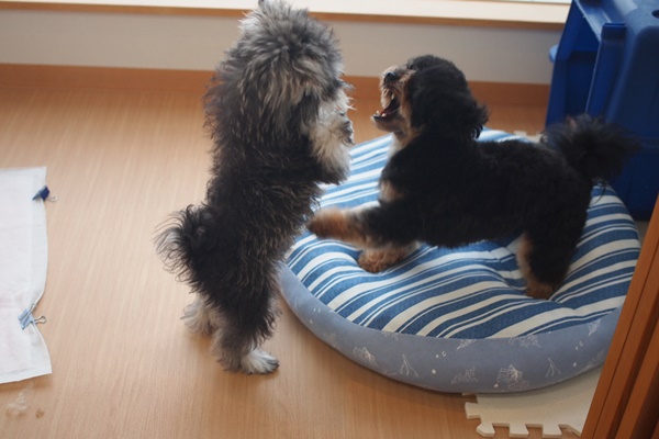 チワプーのラプちゃんと、マルシュナのルルちゃんです。