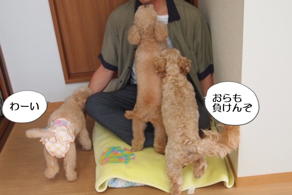 コニーが負けじと頑張るのですが、あんずちゃんの方が人の懐に入るのが上手いです。