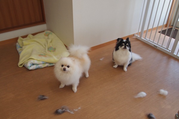 今回は2頭とも抜け毛がどっさり!