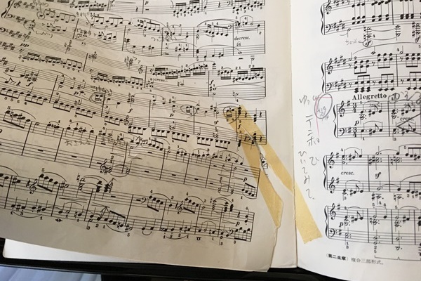 激しく楽譜をめくらないと間に合わない箇所だったので、いつぞやビリッとやってしまったんでしょうね。