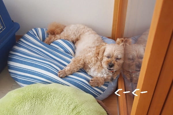 お散歩に行くまでは1時間くらいストーカーのようについてきてたのに。