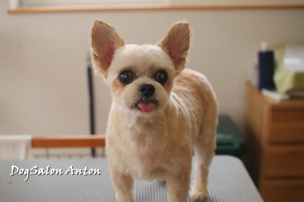 アントンでは伸びた後のことも考えて、どの子も目周りは短くカットするようにしています。