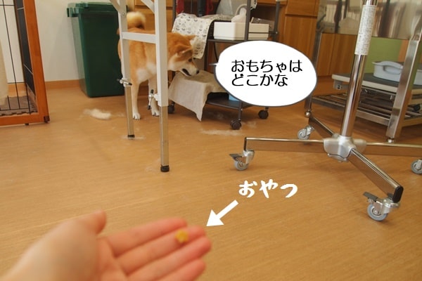 トリミングテーブルの上にいる時は、ちょこちょこおやつを食べてくれましたが、