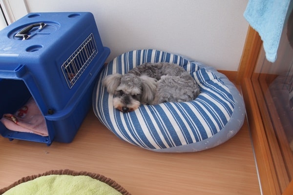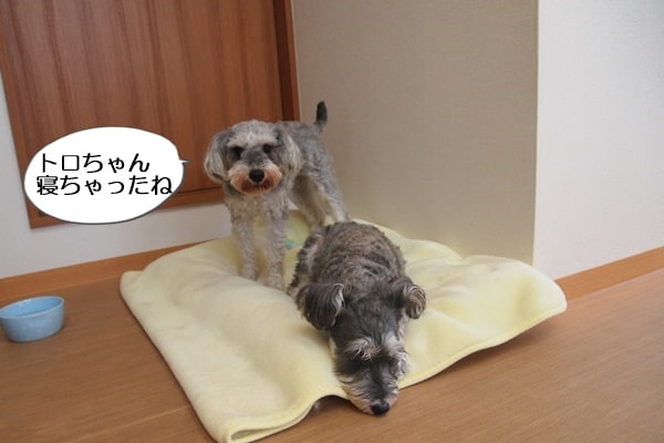 寝ているウニちゃんを起こすと、とても不満そうに「クーン」と鳴いてました。