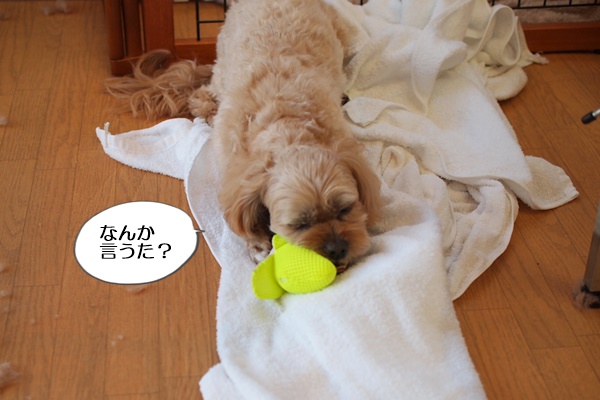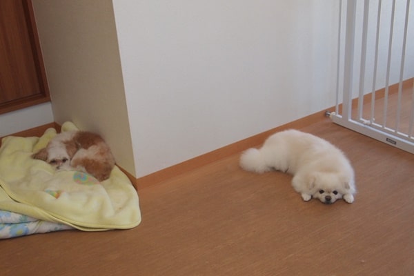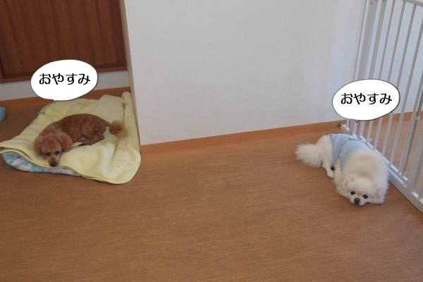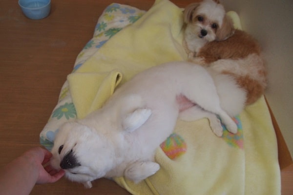ゴンちゃんは寝ていいけど、フウちゃんはこれからシャンプーですよ。
