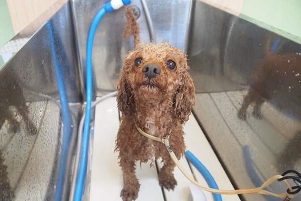 モコちゃんは、いつも耳が赤くなって汚れてしまうので念入りに耳洗浄です。