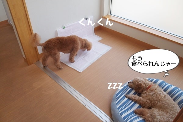 ゴンちゃんは一生懸命ニオイを嗅いでいる時も、看板犬コニーは起きません。