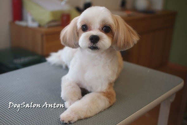 ゴンちゃんは、毛が伸びると困ったような顔に見えます。