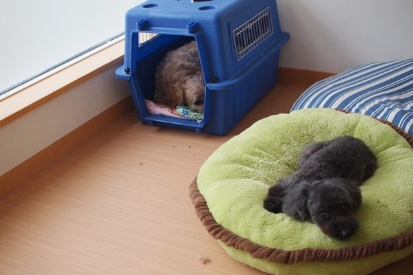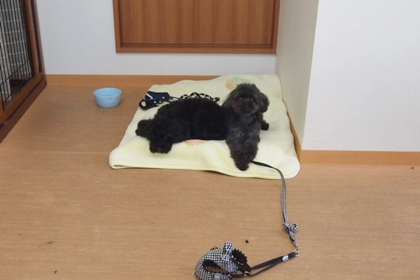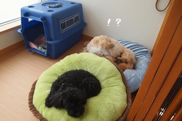 キィーちゃんのカット中、レアンちゃんはしっかり休憩。