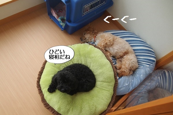 レアンちゃんのブロー中、ふと横を見てみると、キィーちゃんとコニーが仲良く寝ていました。