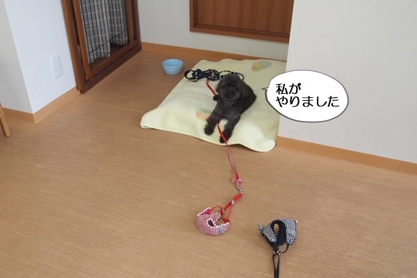 レアンちゃんのハーネスと元に戻したはずなのに、また移動してる。