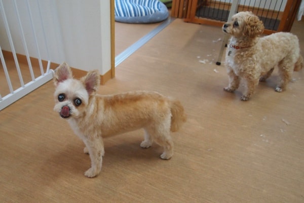 くうちゃんのトリミング中、雷がゴロゴロ、雨がザーザー。