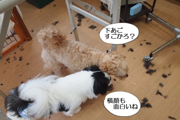 トリミングテーブルの上で乾かす時にまた元気を取り戻しますが、ある程度時間が経つとまた大人しくなってくれます。