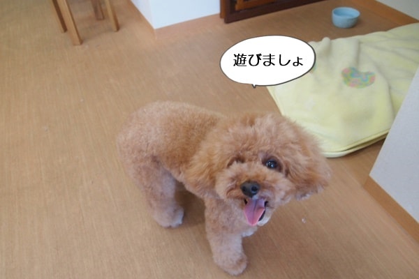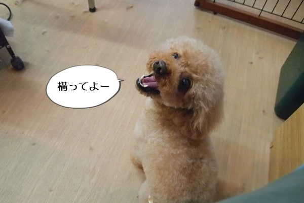 一緒になって遊びたいけど、今遊んだらカットが嫌になるからちょっと我慢ね。