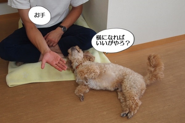この日は、「伏せ」の後の「お手」がどうしてもできません。