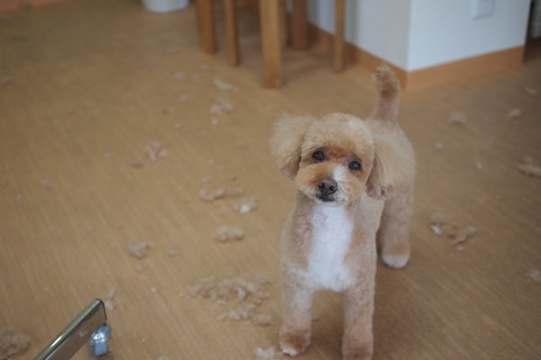 モコちゃんの耳の毛も舞っていたので、耳の毛だけカットしにくかったです(汗)。