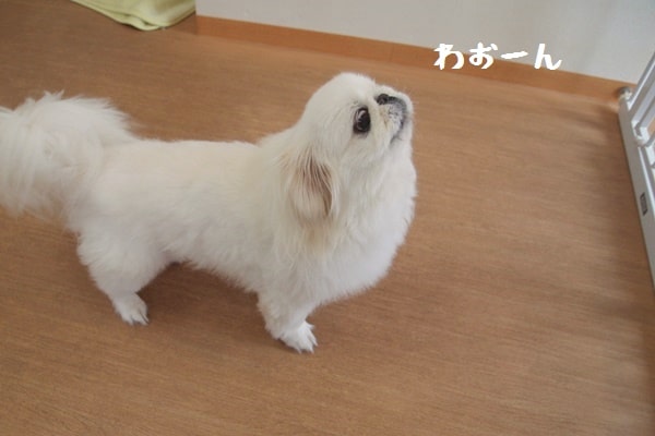 まるちゃんはというと、お母さんが行ってしまって「わおーん」と鳴いていました。