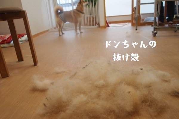 ちょっとノアちゃんの黒い毛も混ざっていますが、ドンちゃんの抜け毛です。