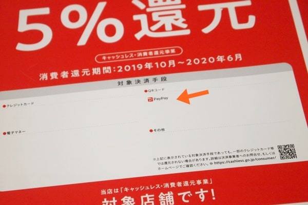ちなみに、キャッシュレス・消費者還元事業は、10月1日~翌年6月30日まで。