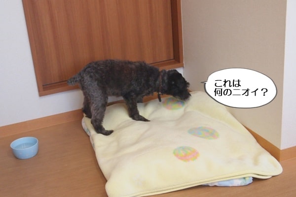 何にニオイがするのか、お店に来てからずっと毛布を嗅ぎ続けてました。