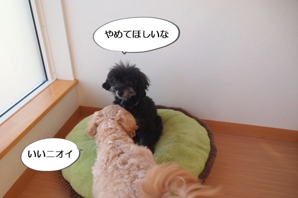 瑠玖ちゃんは逃げずに怒り、モコちゃんは逃げて近寄らず。