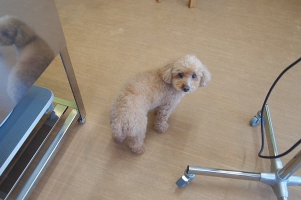ぶっ通しでやるサロンも多いと思いますが、トイレ休憩はとても大事だと思っているので、いつもカットの前に床に降ろします。