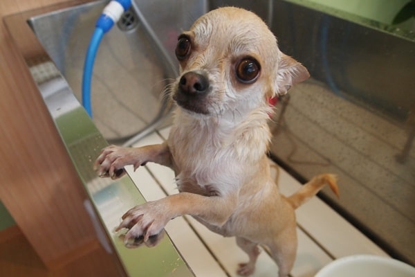 こころちゃんを洗っている時、あんずちゃんは心配そうに下にいるんです。
