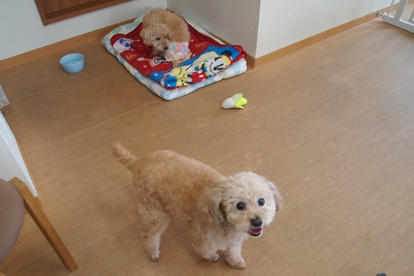 続いて、トイプードルのこころちゃん&あんずちゃんが来てくれました。