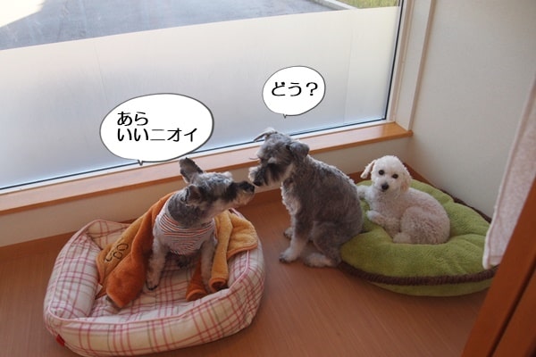 ヤマトちゃんは毛布が暑かったのか、毛布をずらして座っていました。