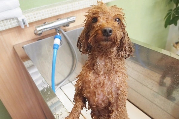 そしてなぜか今日はシャンプーを始める前に、シンクから出たがるドンちゃん。