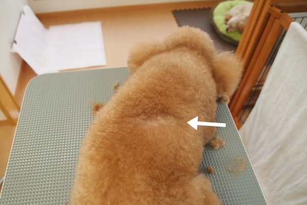 途中までは何事もなかったのですが、カットの途中からその毛の無い場所を掻き始めました。