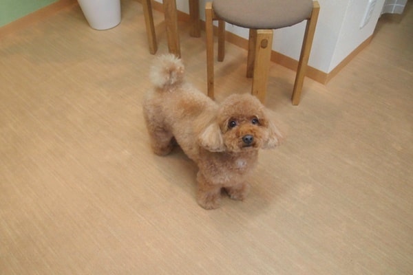 どうしても、トリミングテーブルの上でじっとするのが苦手な様子。